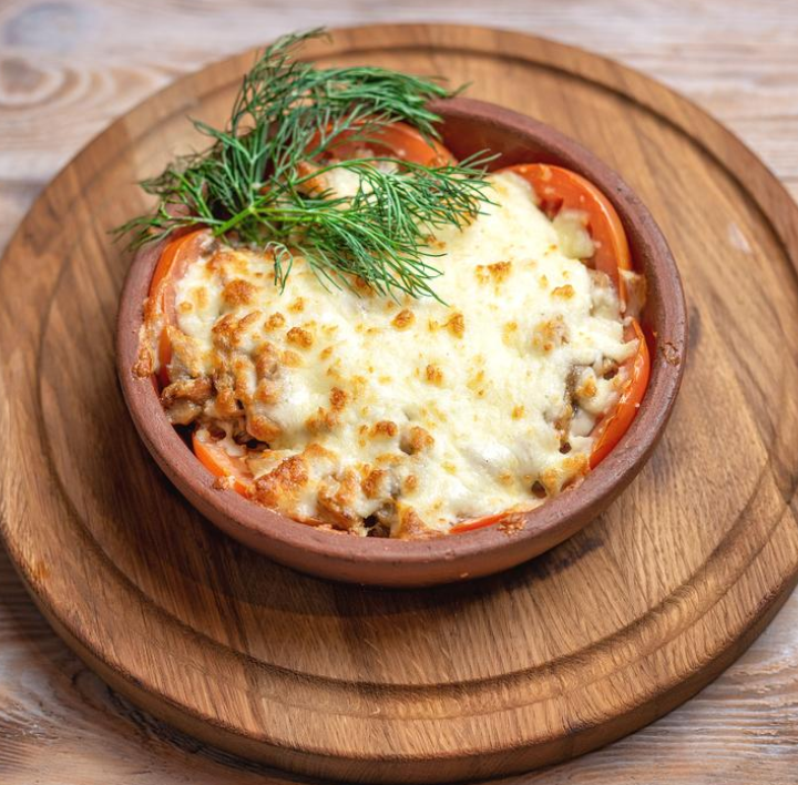 Запеченые помидоры под сыром сулугуни.