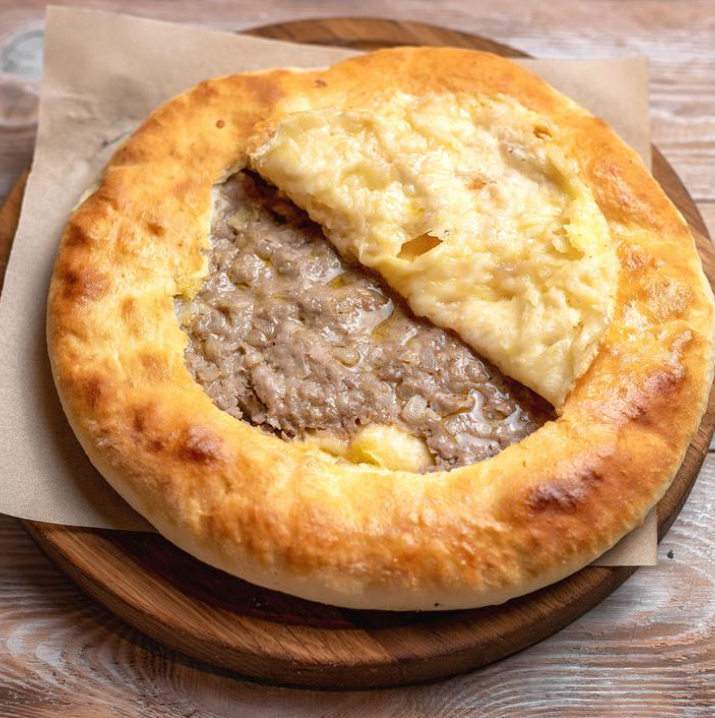 Закрытый хачапури с рубленной свининой, говядиной и грузинскими специями.