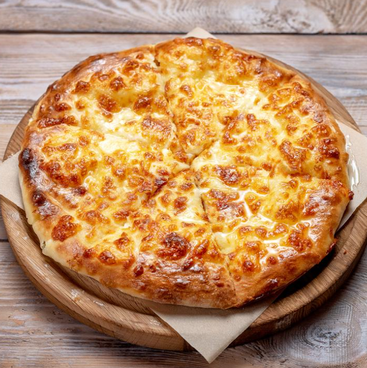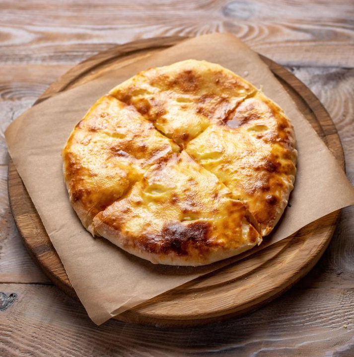 Большой хачапури на компанию с добавлением 4х видов сыра: имеритинский, домашний, сулугуни, копченый сулугуни.