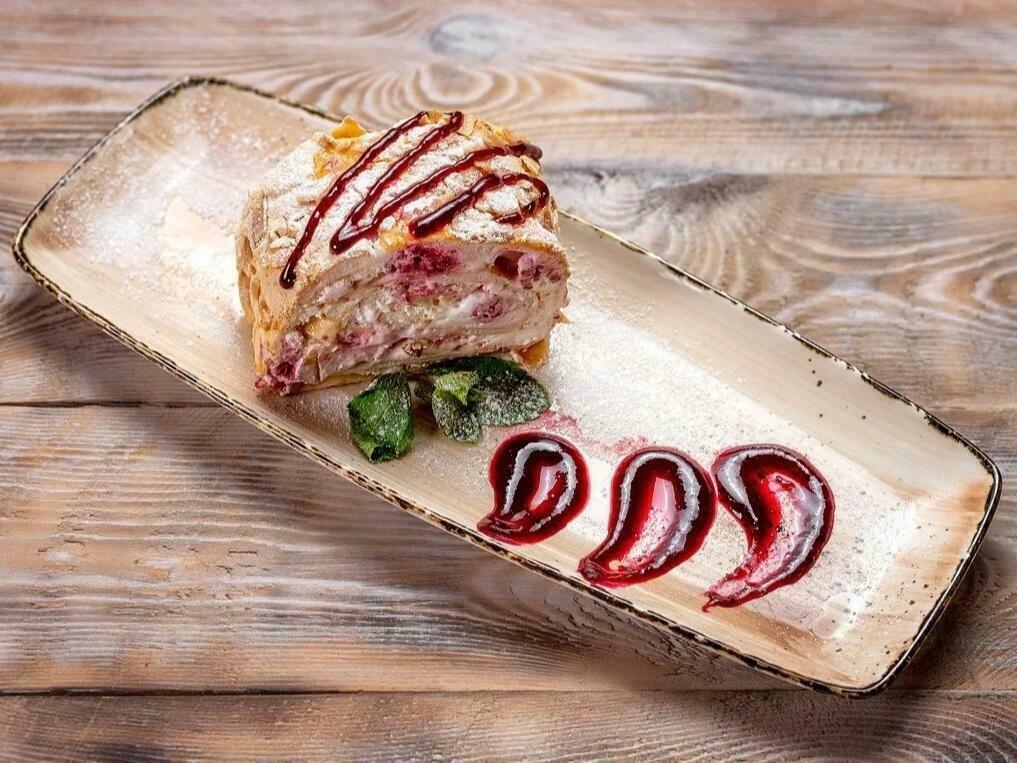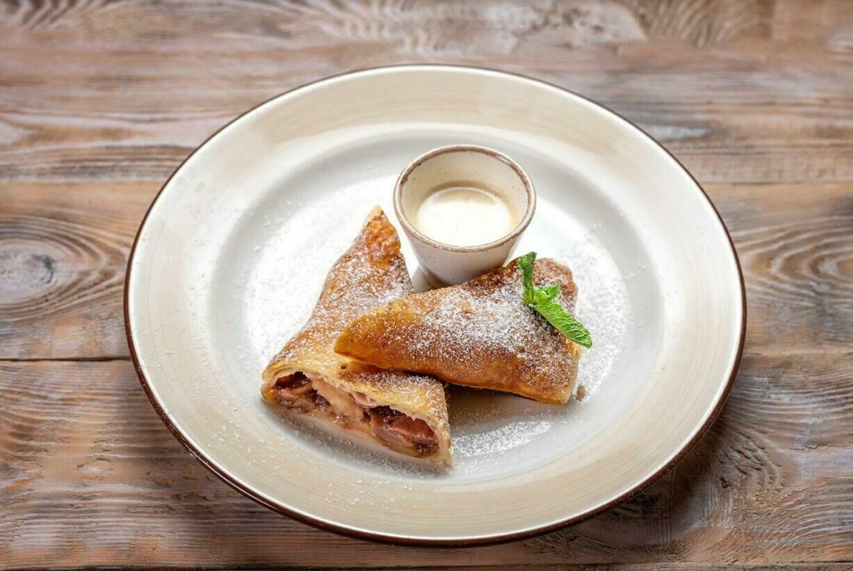 Подается со сливочным соусом и мятой.