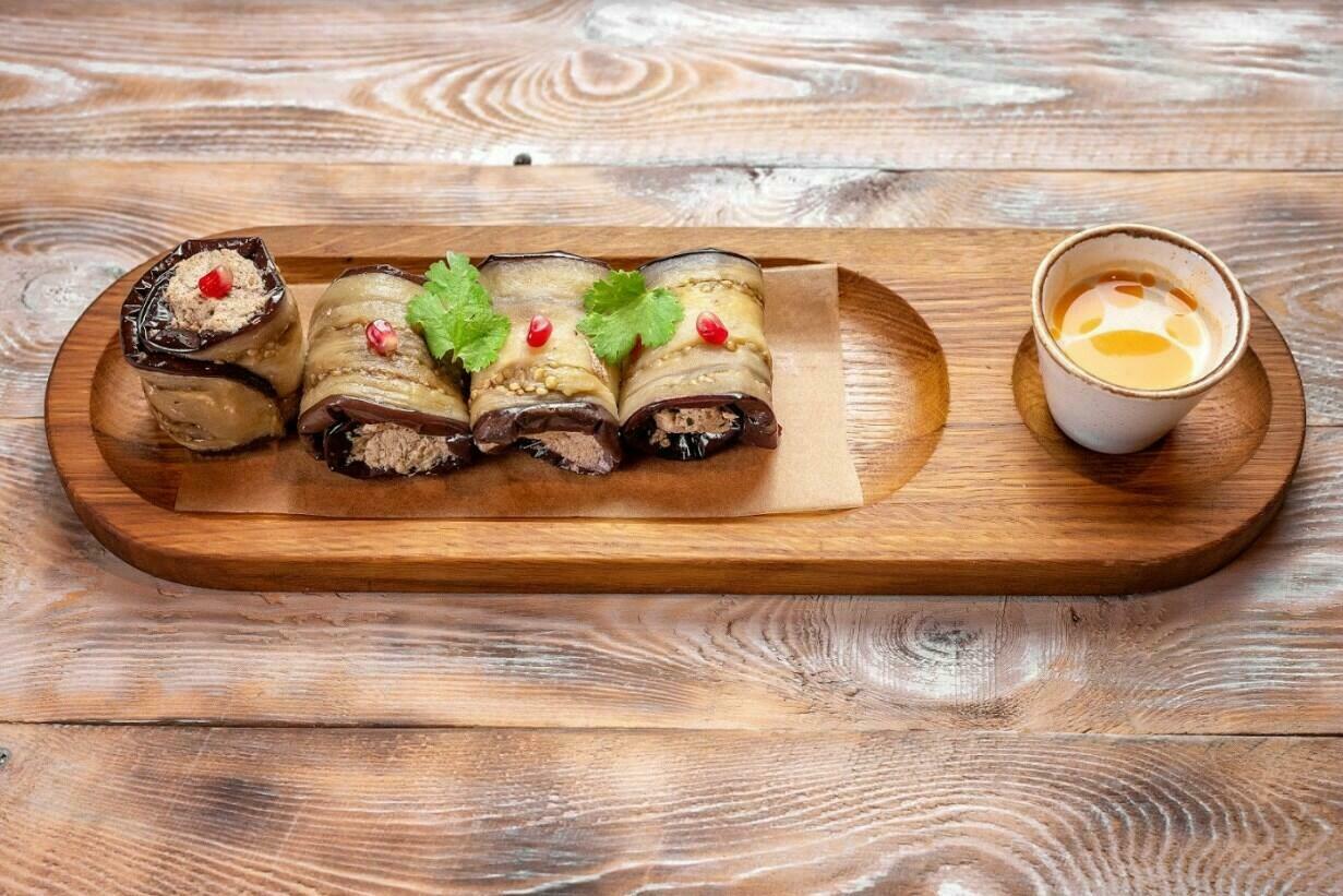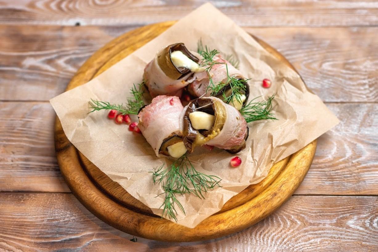 Рулетики из баклажанов с беконом