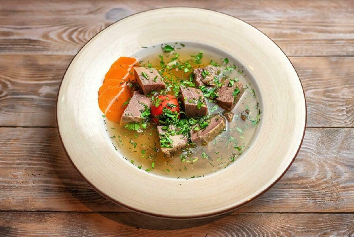 Наваристый суп с телятиной, овощами и зеленью.
