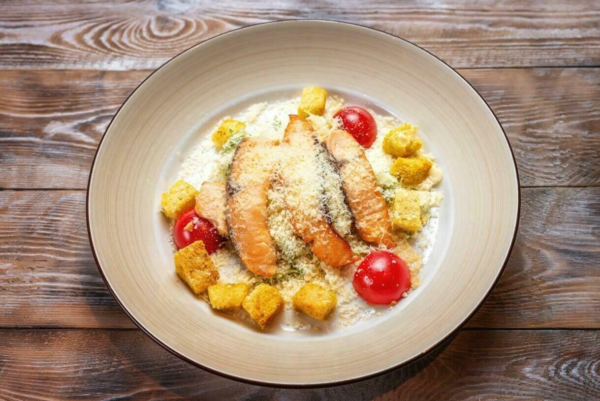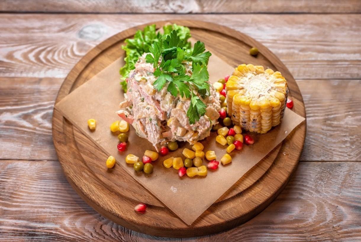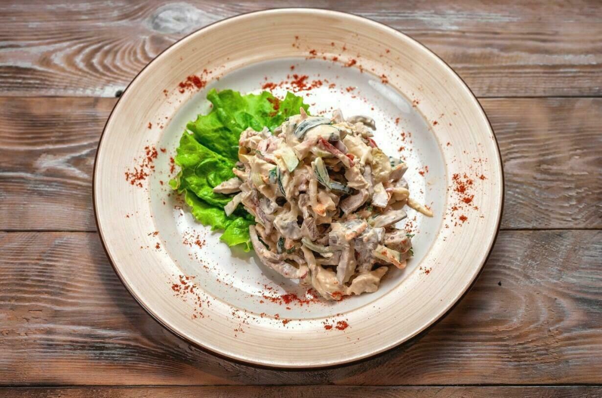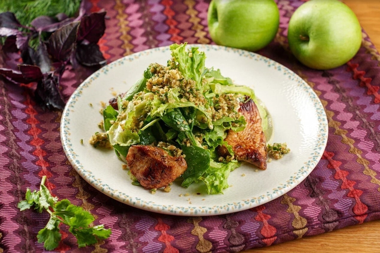 Салат с индейкой и яблочным муссом