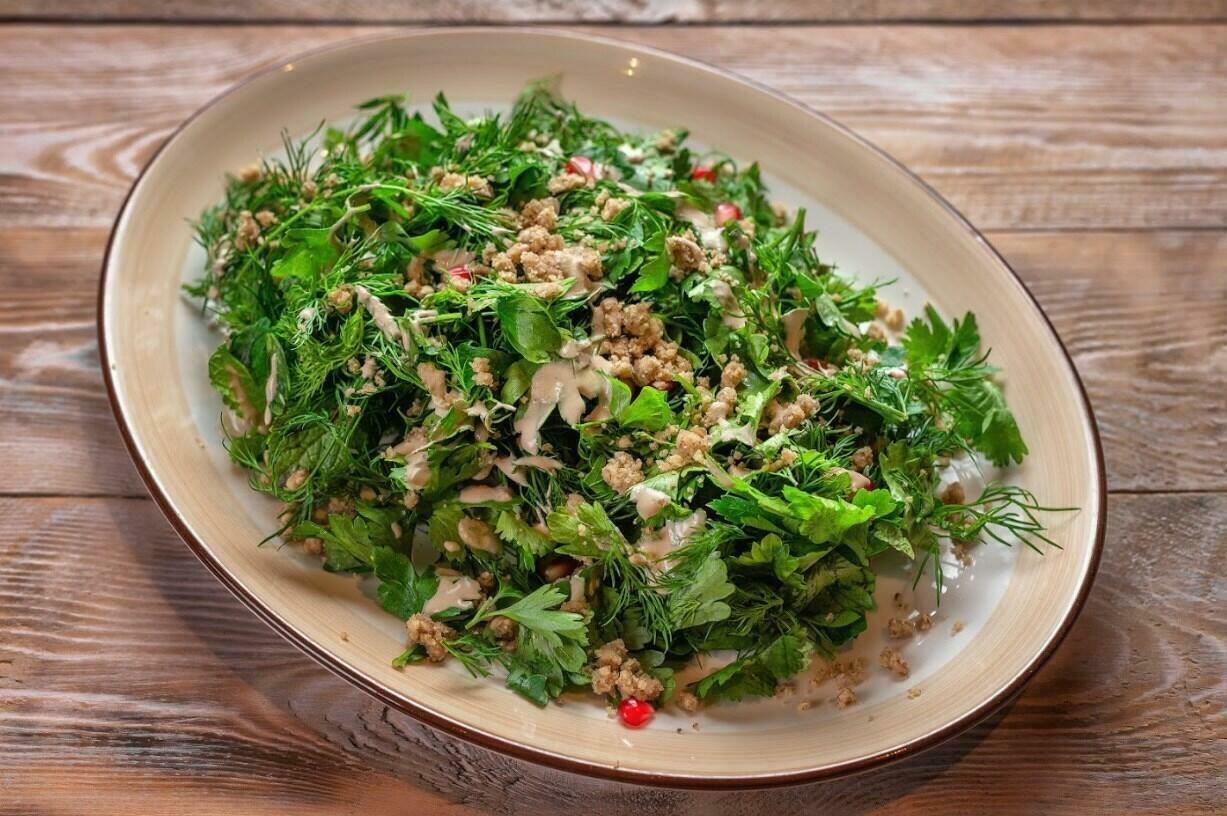 Со свежей зеленью, лавашом и луком.