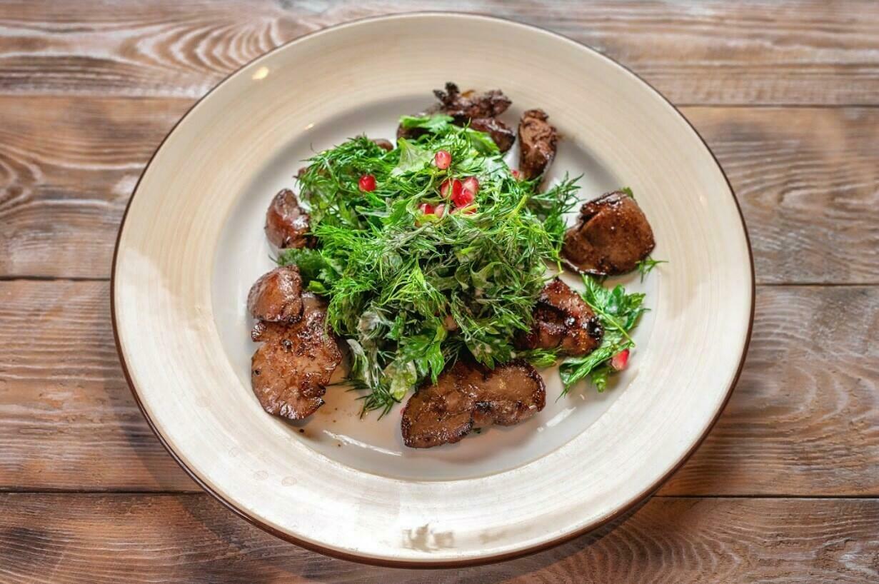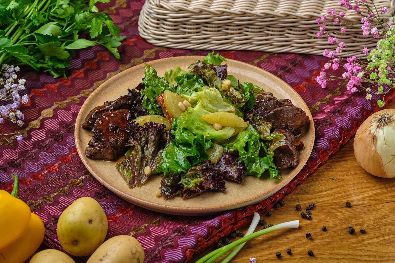 Салат с печенью и томленой грушей