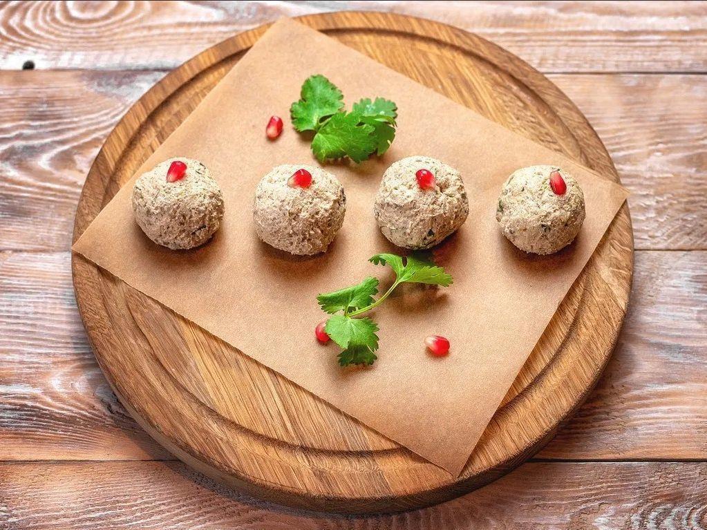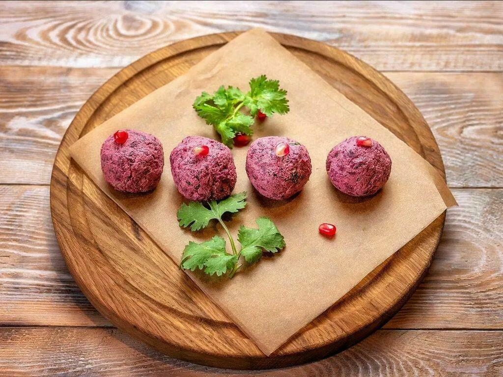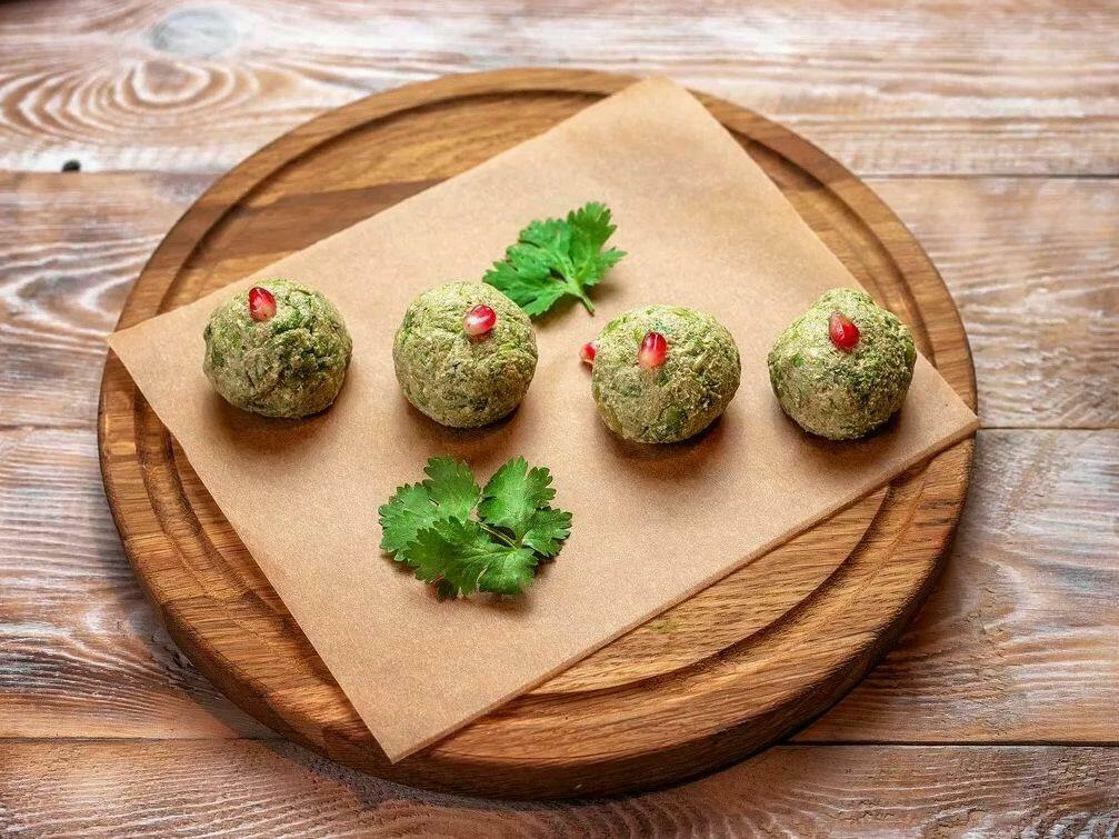 Подаются с зеленью и гранатовыми зернами.