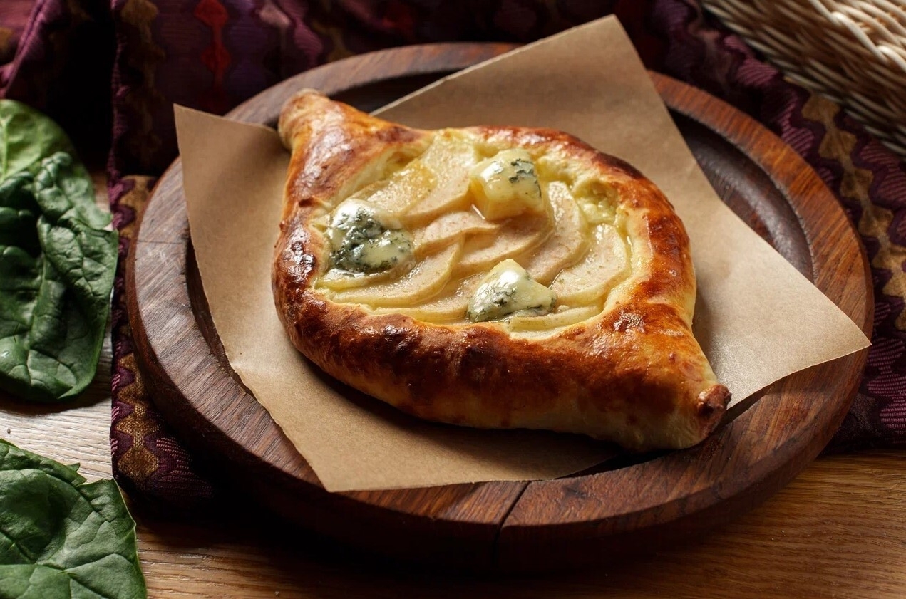 Хачапури по-аджарски с грушей и сыром Дор блю
