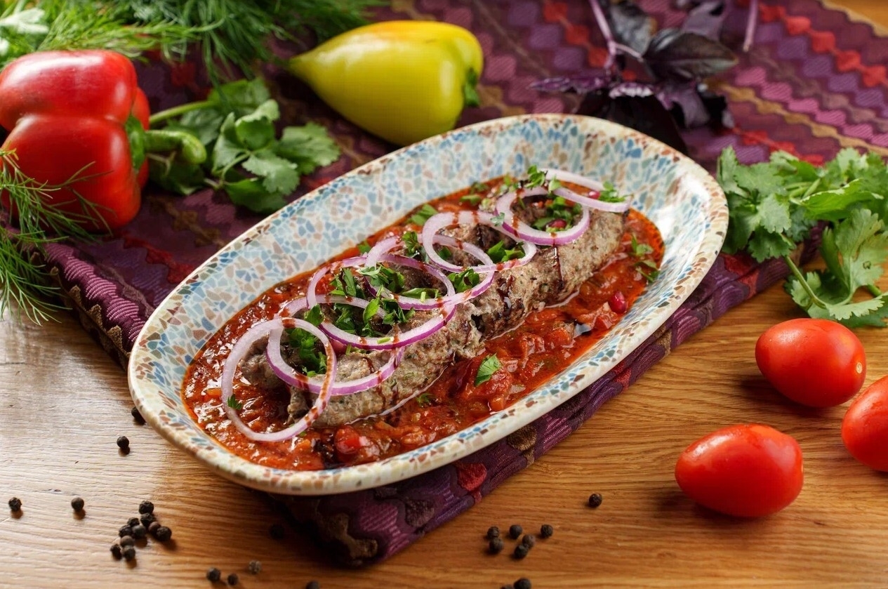Люля-кебаб в соусе из болгарского перца и томатов